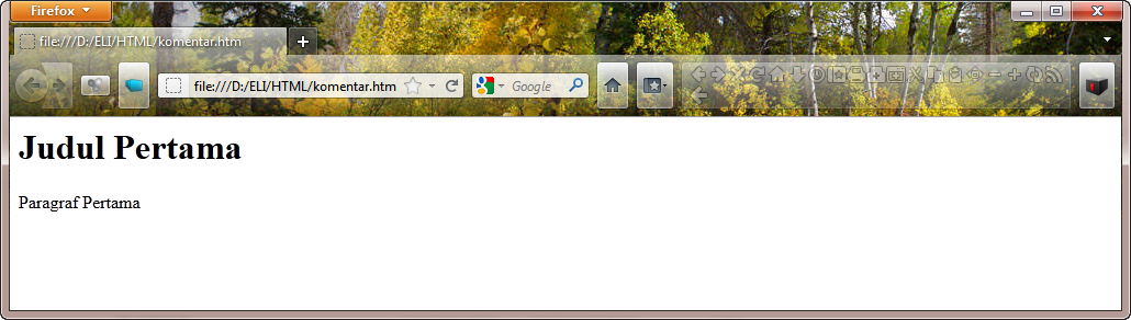 <h1>Judul Pertama</h1><!--dipertunjukan sebagai judul-->